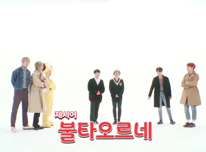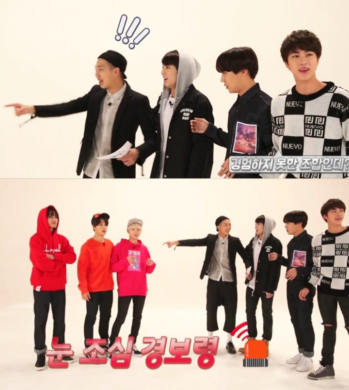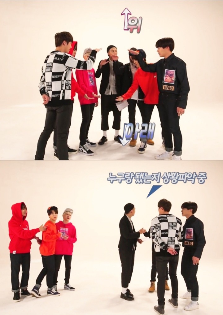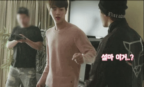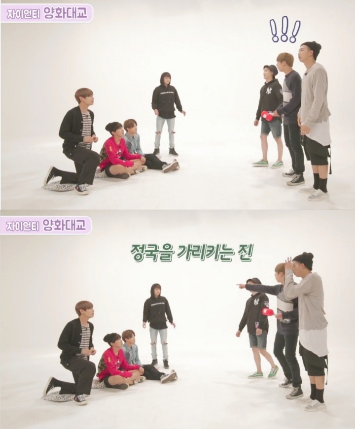석진이 무슨 말도없이 어! 하고 꾹이 가리킴