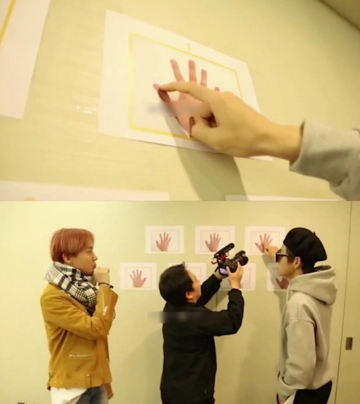 🐯글고 이게 호석이형 손인게 호석이형이 요손가락이 딱 얇단말이에요~!