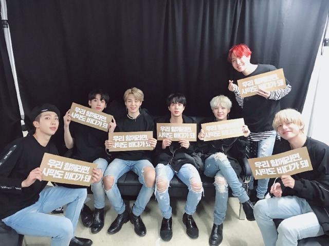 밀어준다는 게 아니고 아미분들이랑 같이 손을 잡고 함께 올라간단