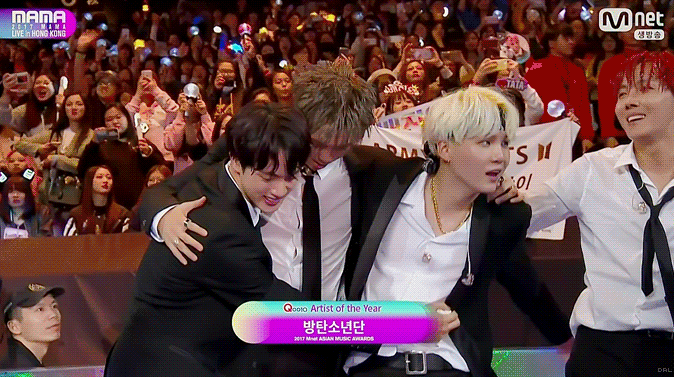 지민: 제가 올해 가장 힘들었을 때가 골든디스크 할 때였던 것 같아요. 그때 한창 인터뷰 할 때도 난 무엇을 위해 살고 있는지 곰곰이 생각해볼 시기인 것 같다, 뭐 그런 식으로 인터뷰를 많이 했더니 팬분들이 많이 걱정을 하시더라고요. 그래서 그때 골디 할 때 무대하면서 생각을 되게 많이 했었는데 근데 그 때 하고 싶었던 말을 형이 상을 받을 때 그 얘기를 다 해주신거에요. 그래서 저는 더 이상 할 말이 없었어요. 저거지! 하면서. 그 시기에 혼자서 노래를 찾아 듣다가 우리 영상을 진짜 많이 봤었어요. 거기 영상 중에 떼창 영상이 있더라고요. 영포에버. 보다가 펑펑 울었어요. '왜 다른 생각을 하고 있었지?' 이유라는 생각이 딱 들더라고요.